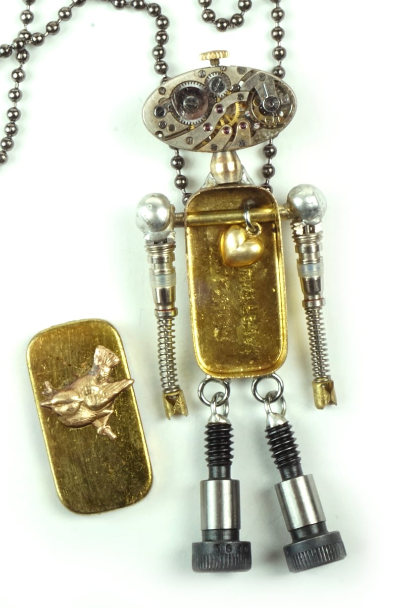 Principal Components: Watch parts tin, bird charm, watch movement, valve cores, shoulder bolts