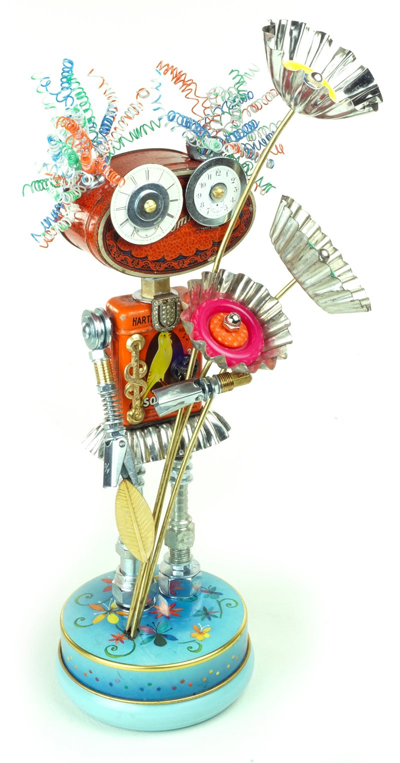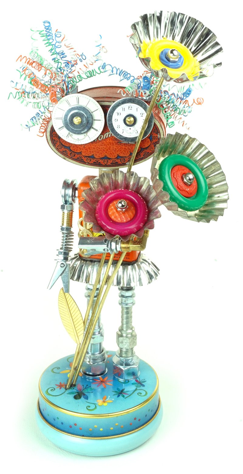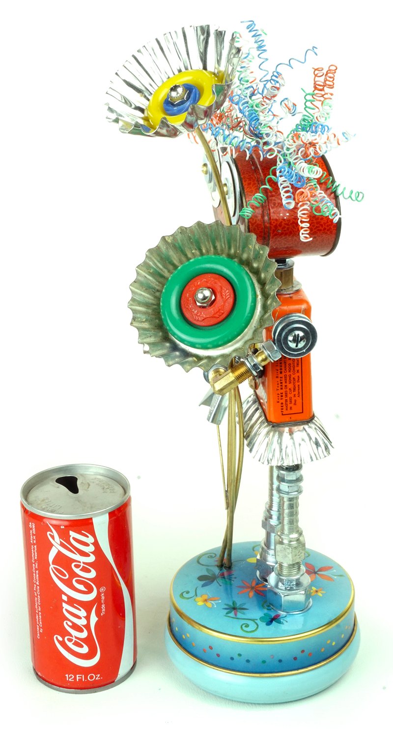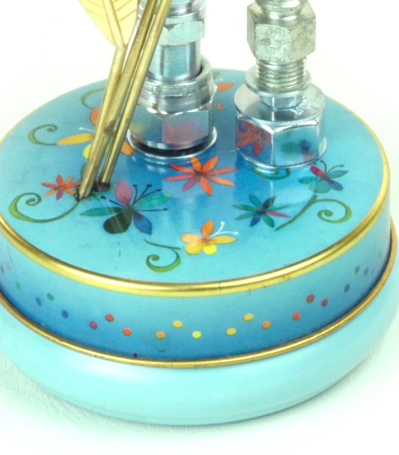 Principal Components: Mint tin, bird food tin, telephone wire, tartlet tins, buttons, hose fittings, toggle bolts, watch faces, candy tin