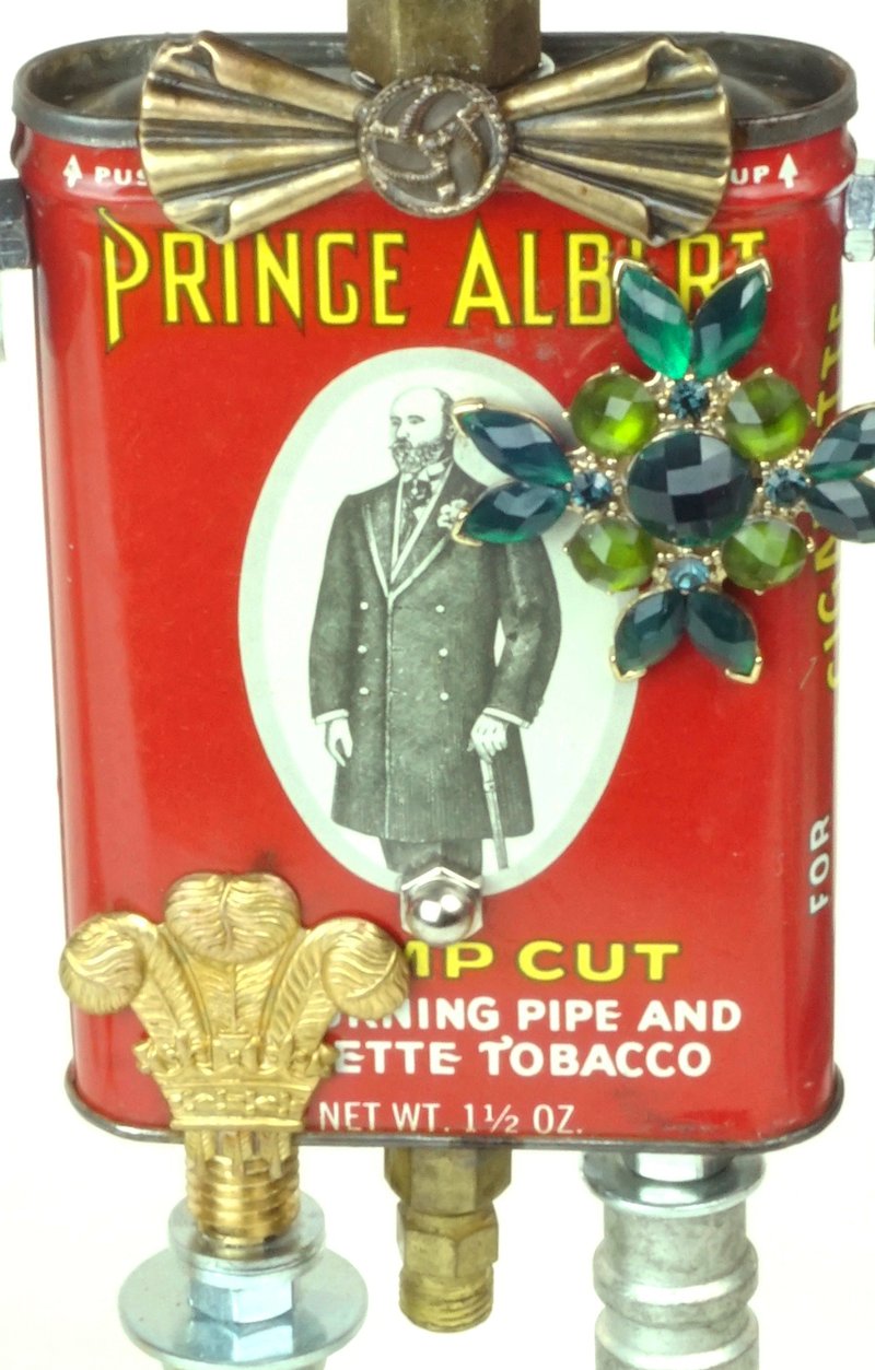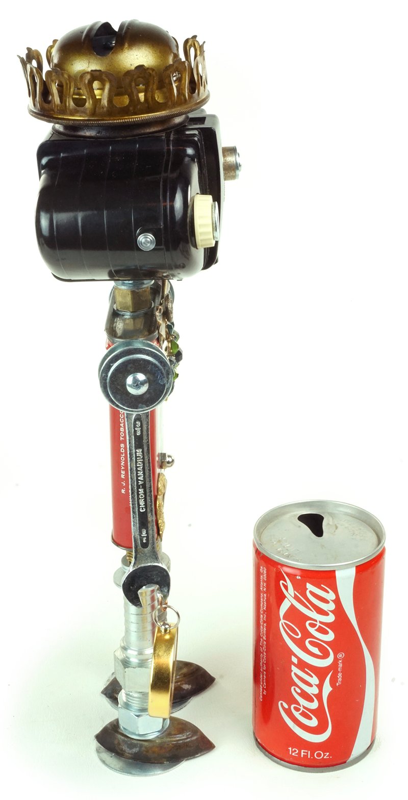 Principal Components: Tobacco tin, Kodak 127 camera, oil lamp burner, wrenches, hose fittings, candy molds, compass