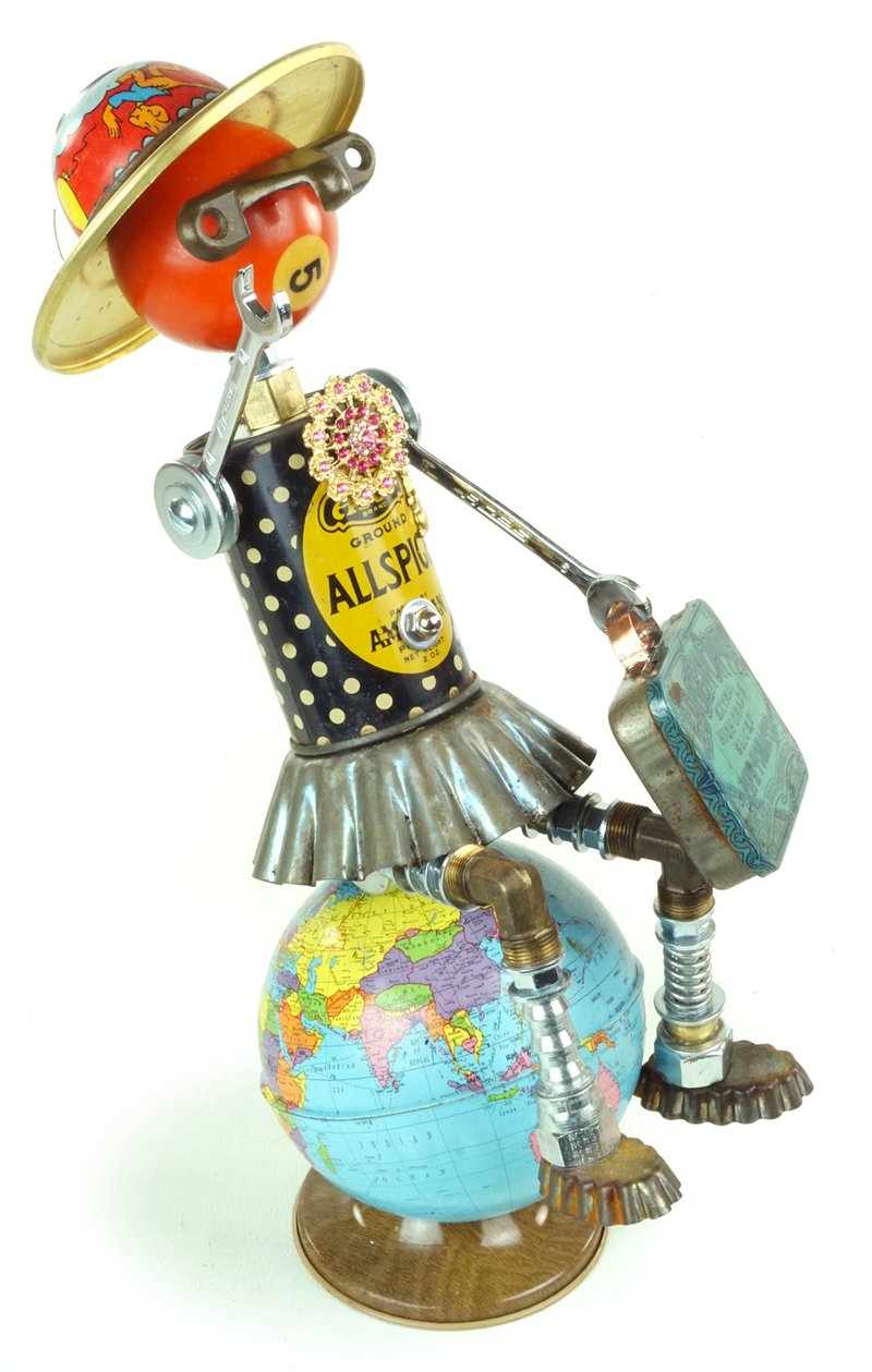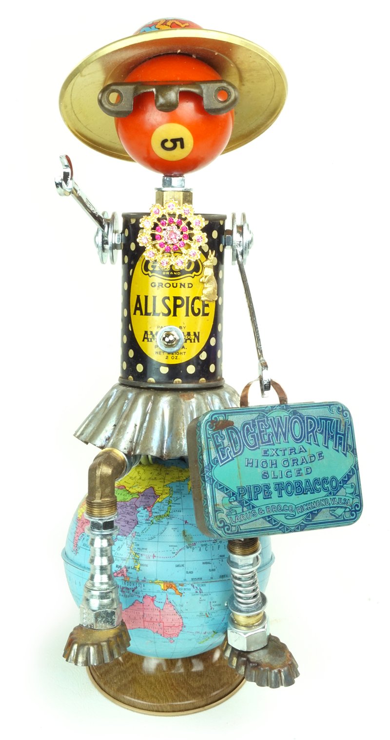 Principal Components: Spice tin, pool ball, sash lock, toy teacup, lamp cap, tartlet tin, globe bank, wrenches, tobacco tin