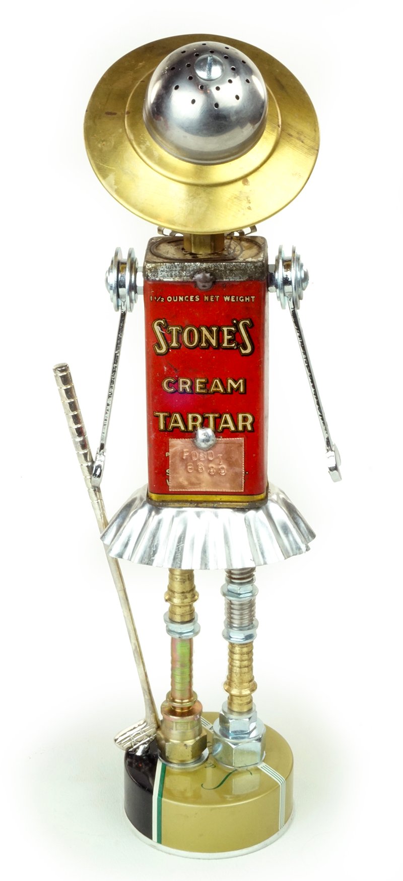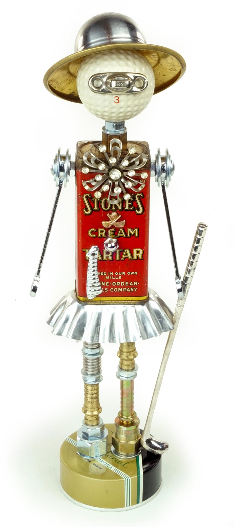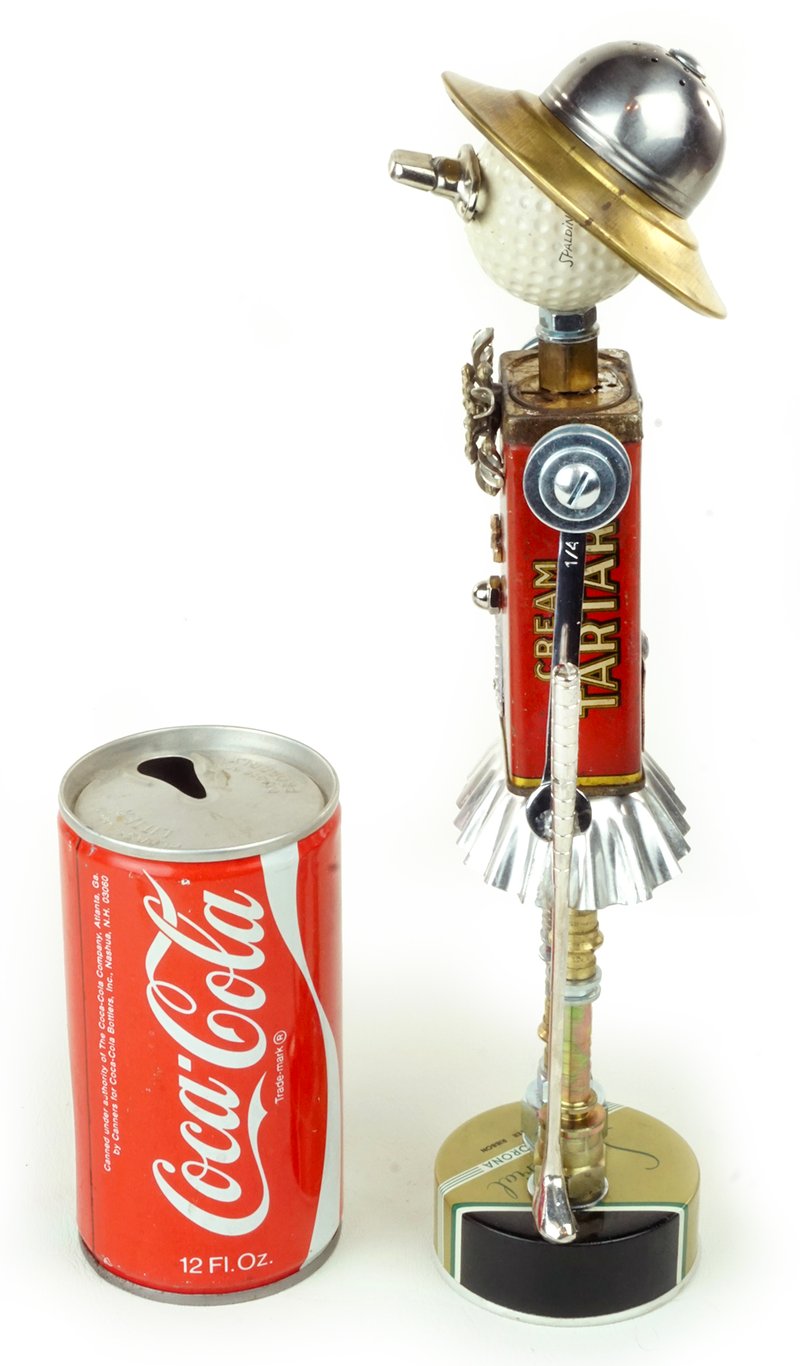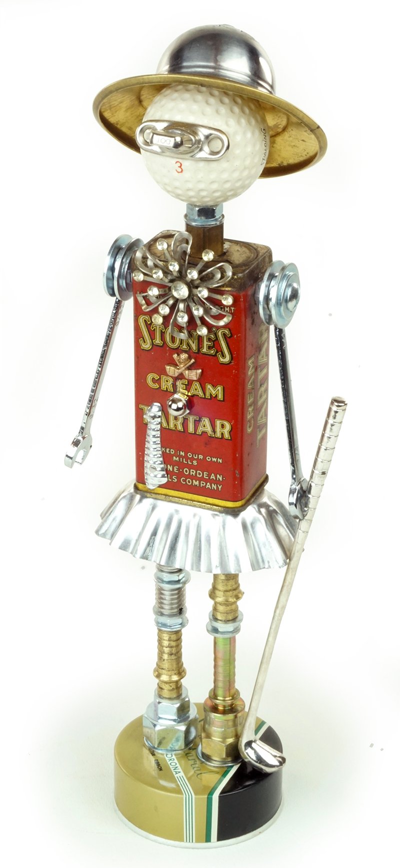Principal Components: Spice tin, golf ball, swizzle stick, lamp cap, tea ball, wrenches, tartlet tin, hose fittings, typewriter ribbon tin