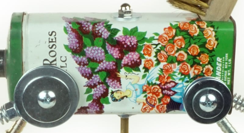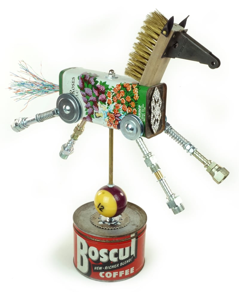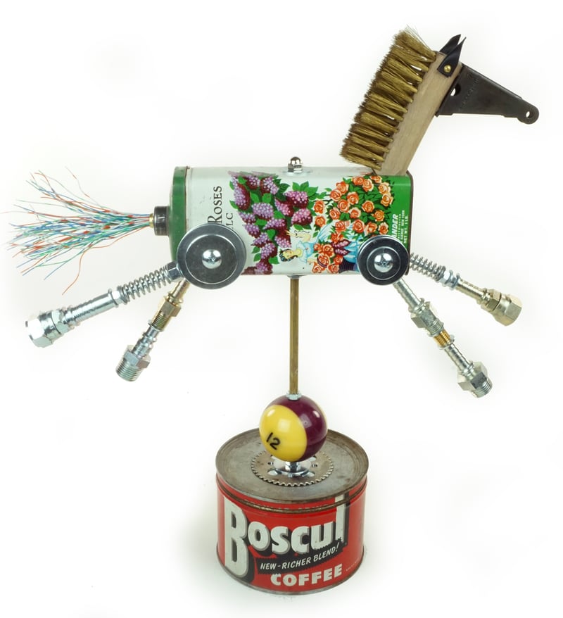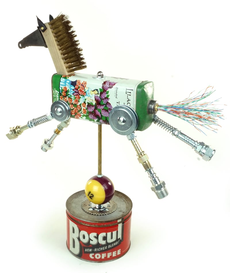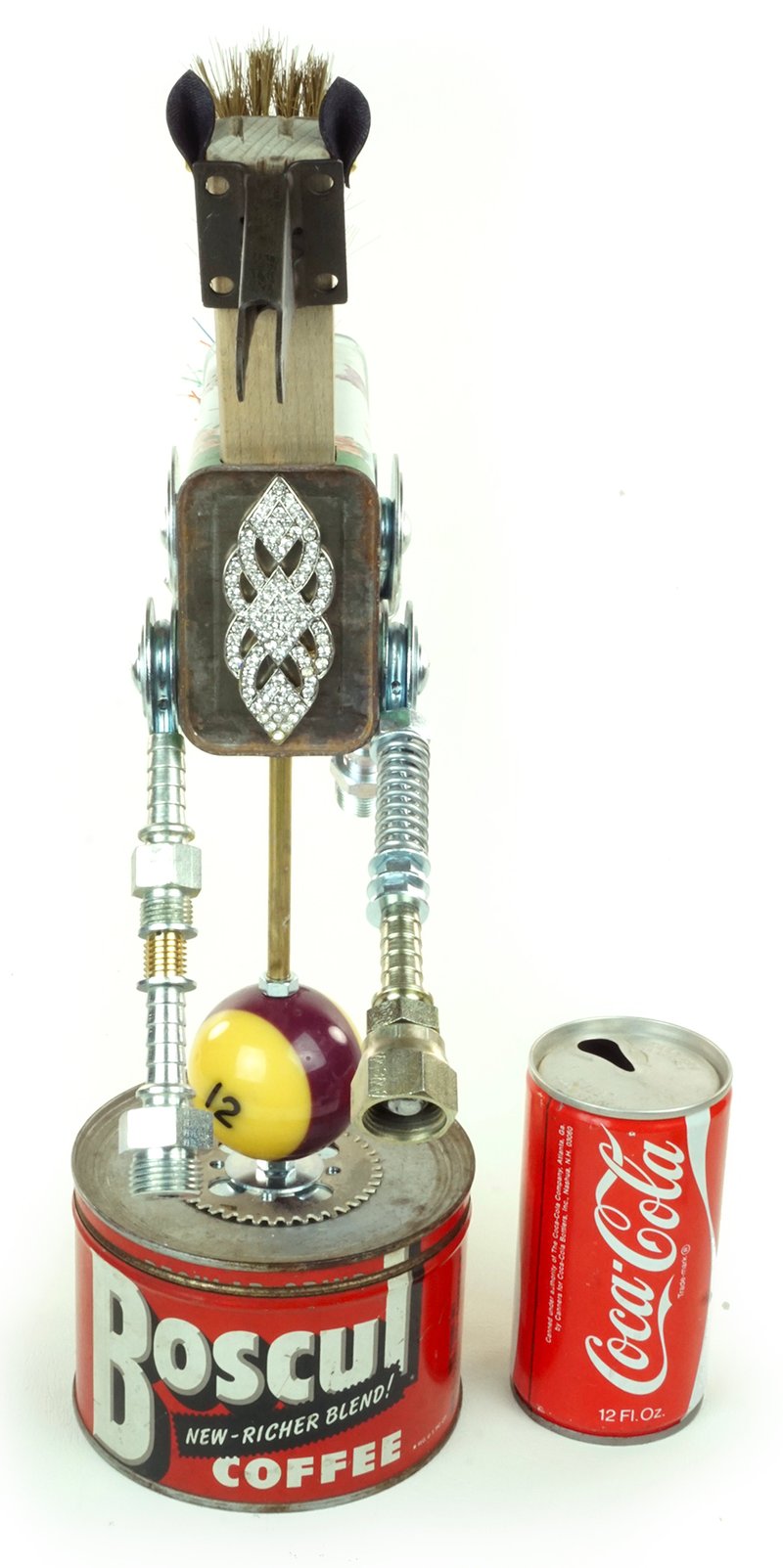 Principal Components: Talc tin, wire brush, screen door bracket, telephone wire, hose fittings, coffee can, pool ball