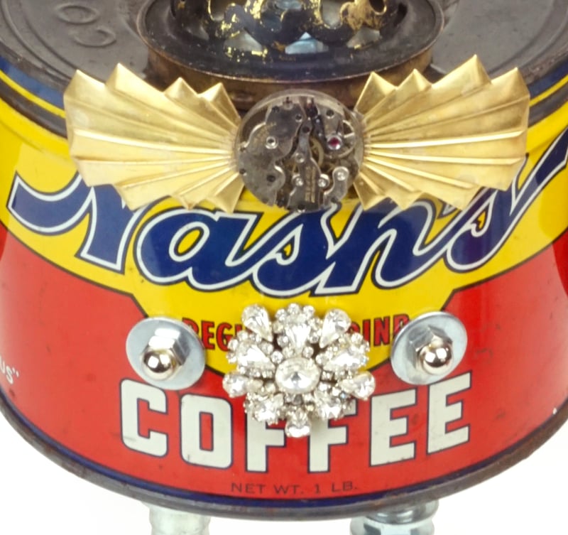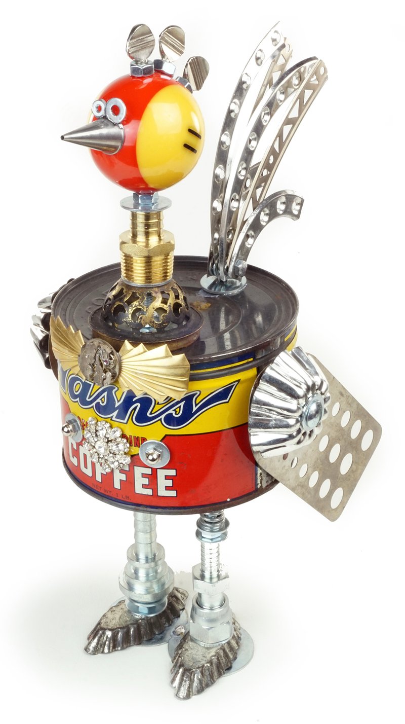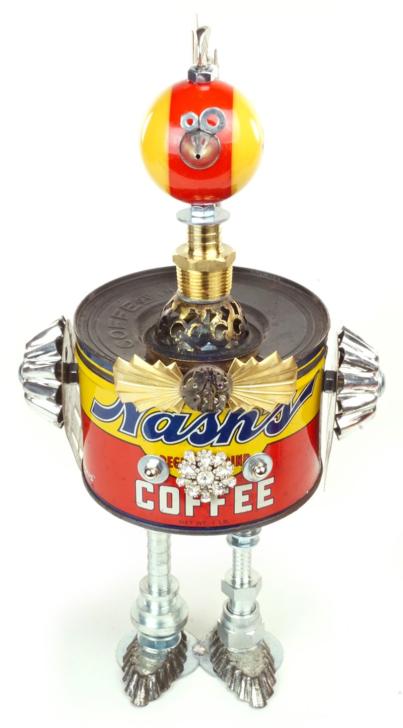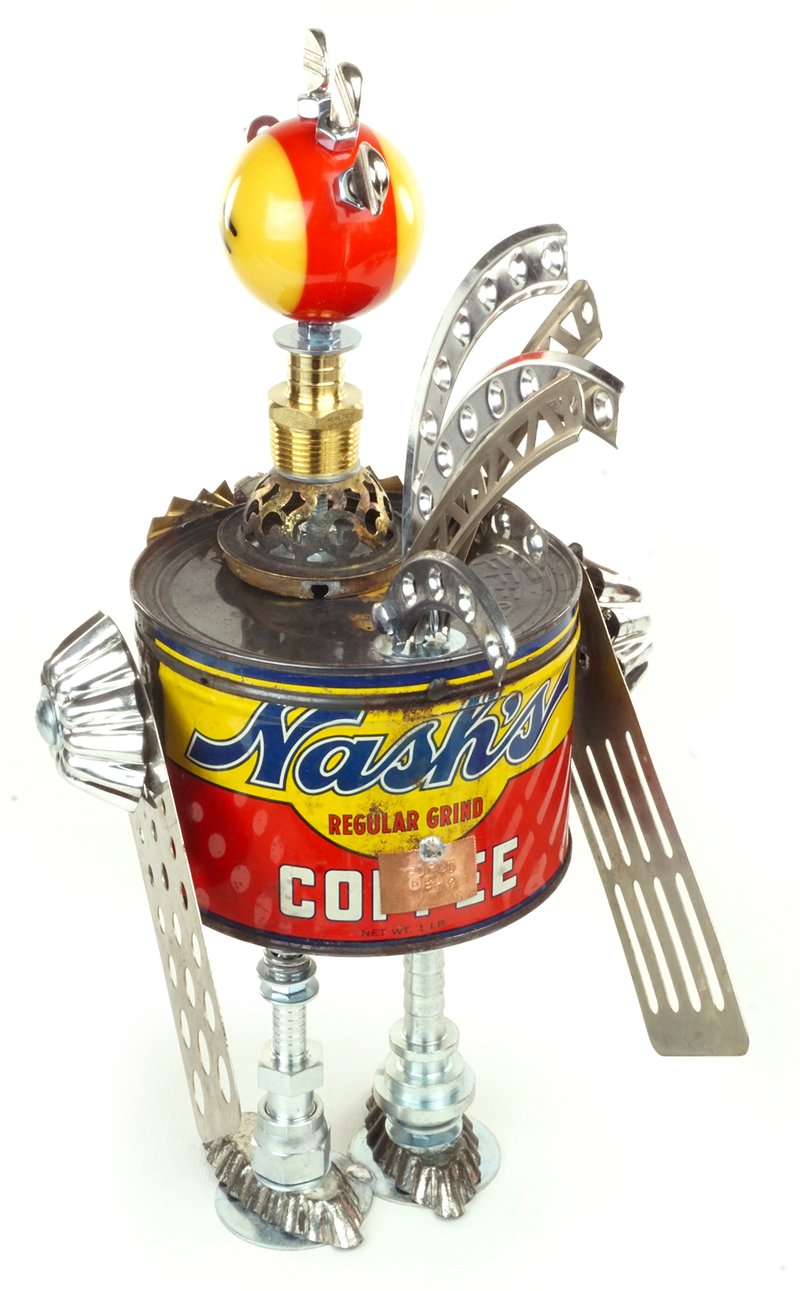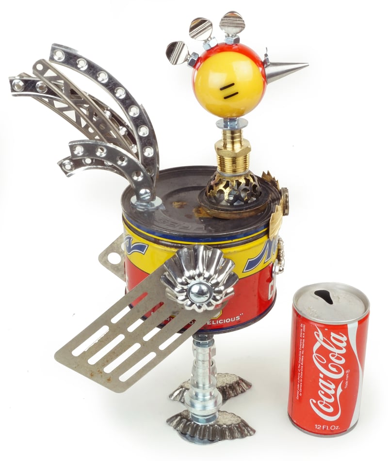 Principal Components: Coffee can, pool ball, erector set girders, spatulas, cake decorating tip, thumb screws, hose fittings, tartlet tins, gas lamp burner part