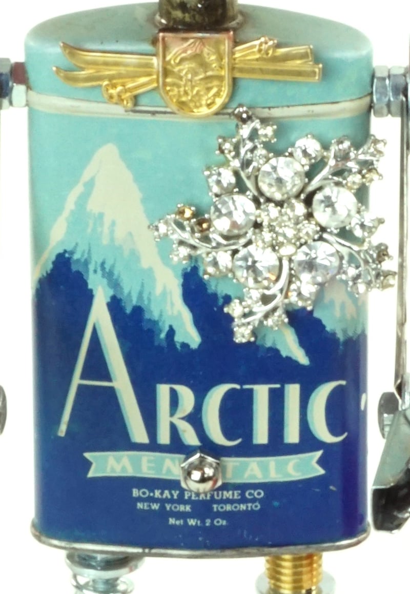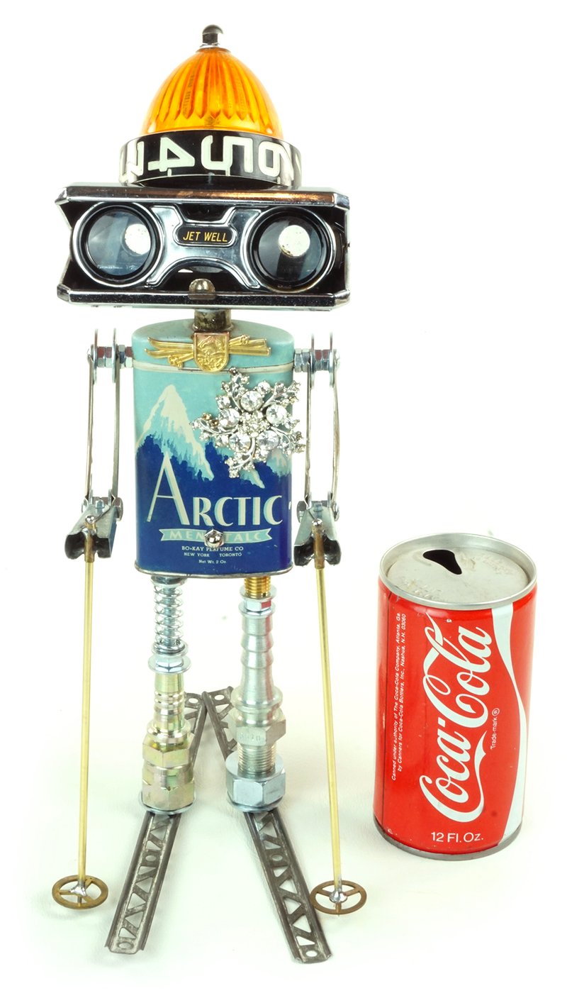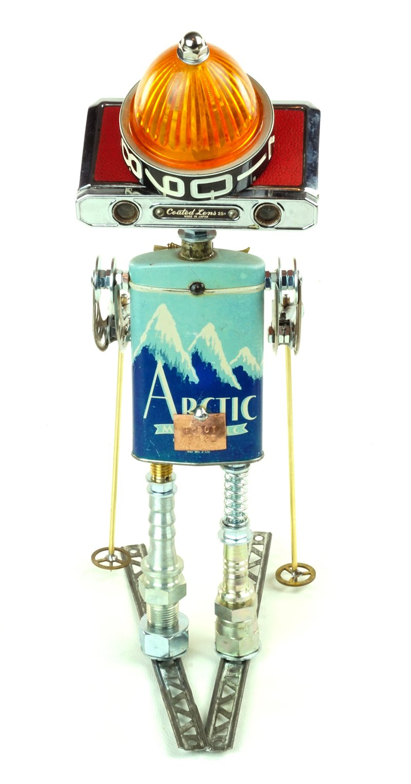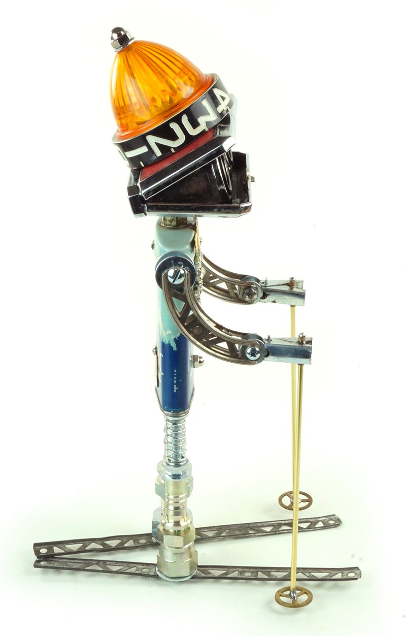 Principal Components: Talc tin, opera glasses, auto signal lens, gas pump dial, erector set girders, toggle bolts, hose fittings, clock gears