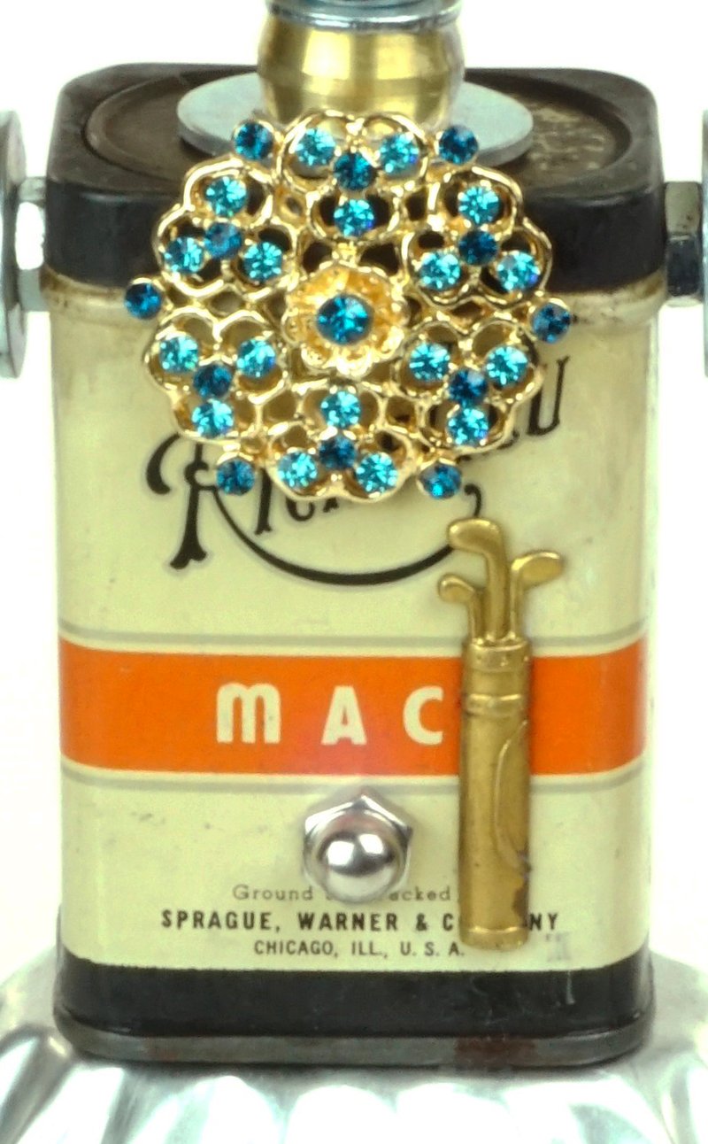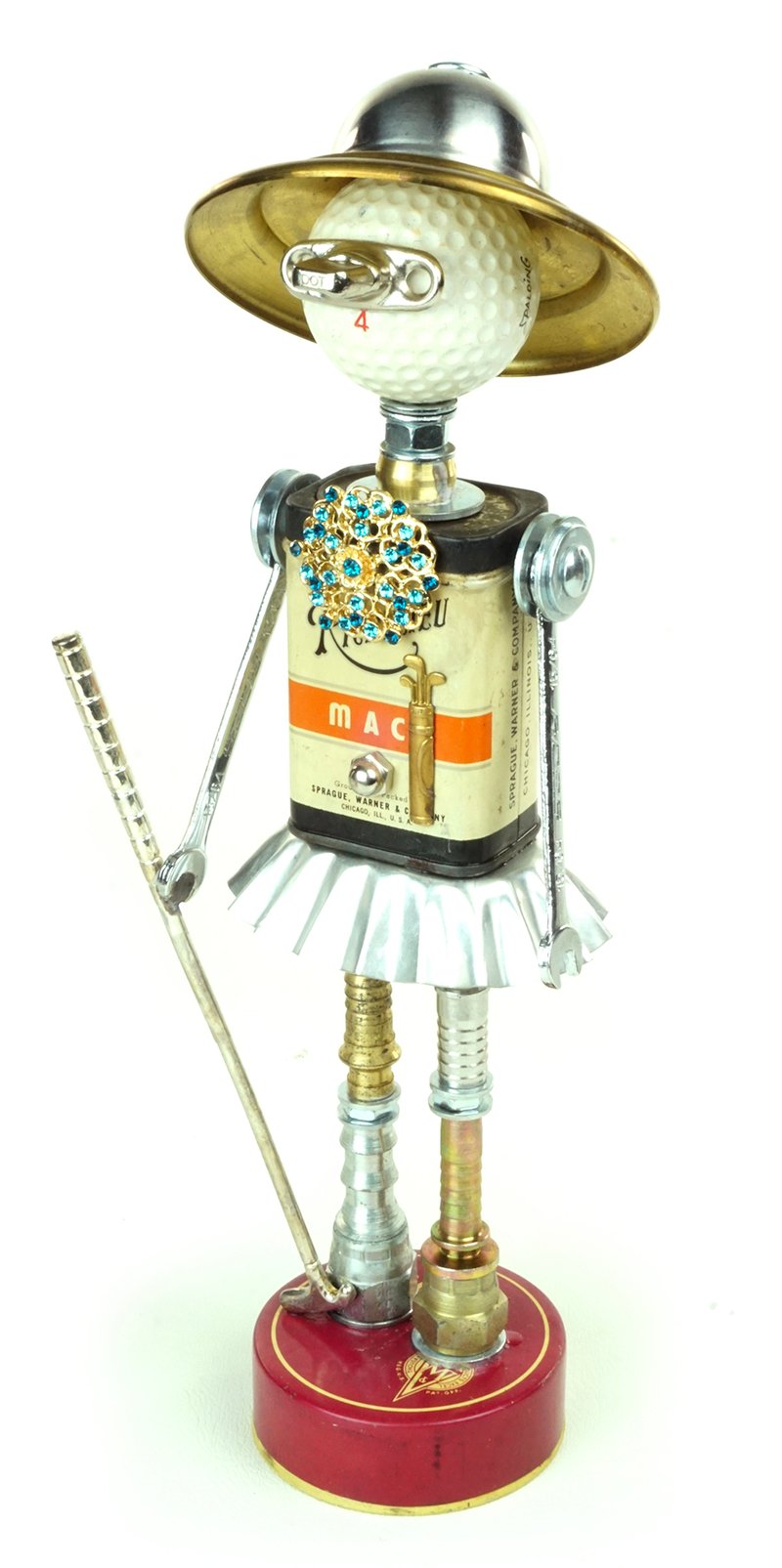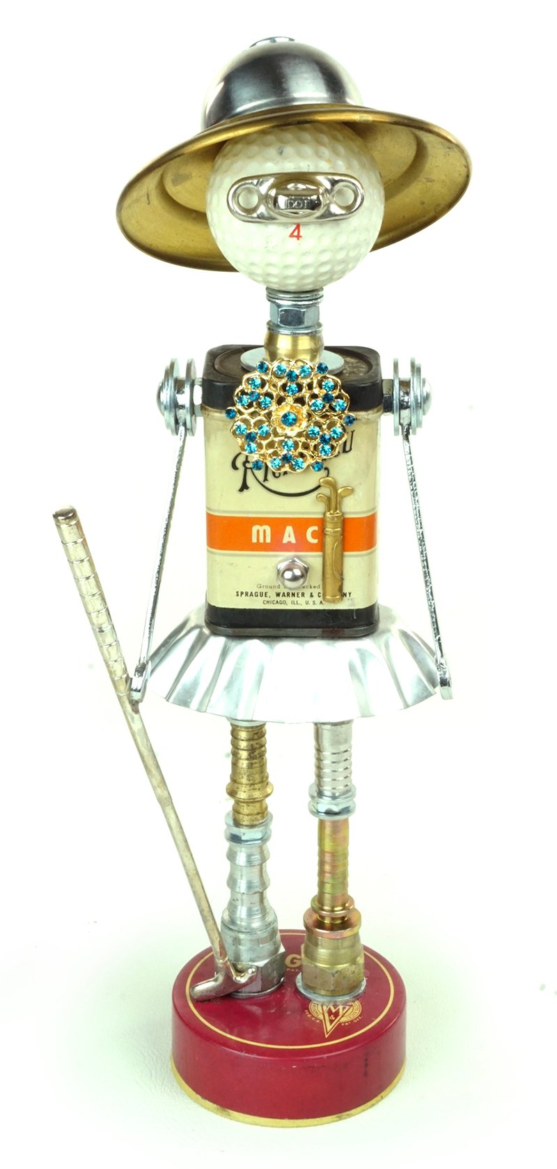 Principal Components: Spice tin, golf ball, swizzle stick, lamp cap, tea ball, wrenches, tartlet tin, hose fittings, typewriter ribbon tin