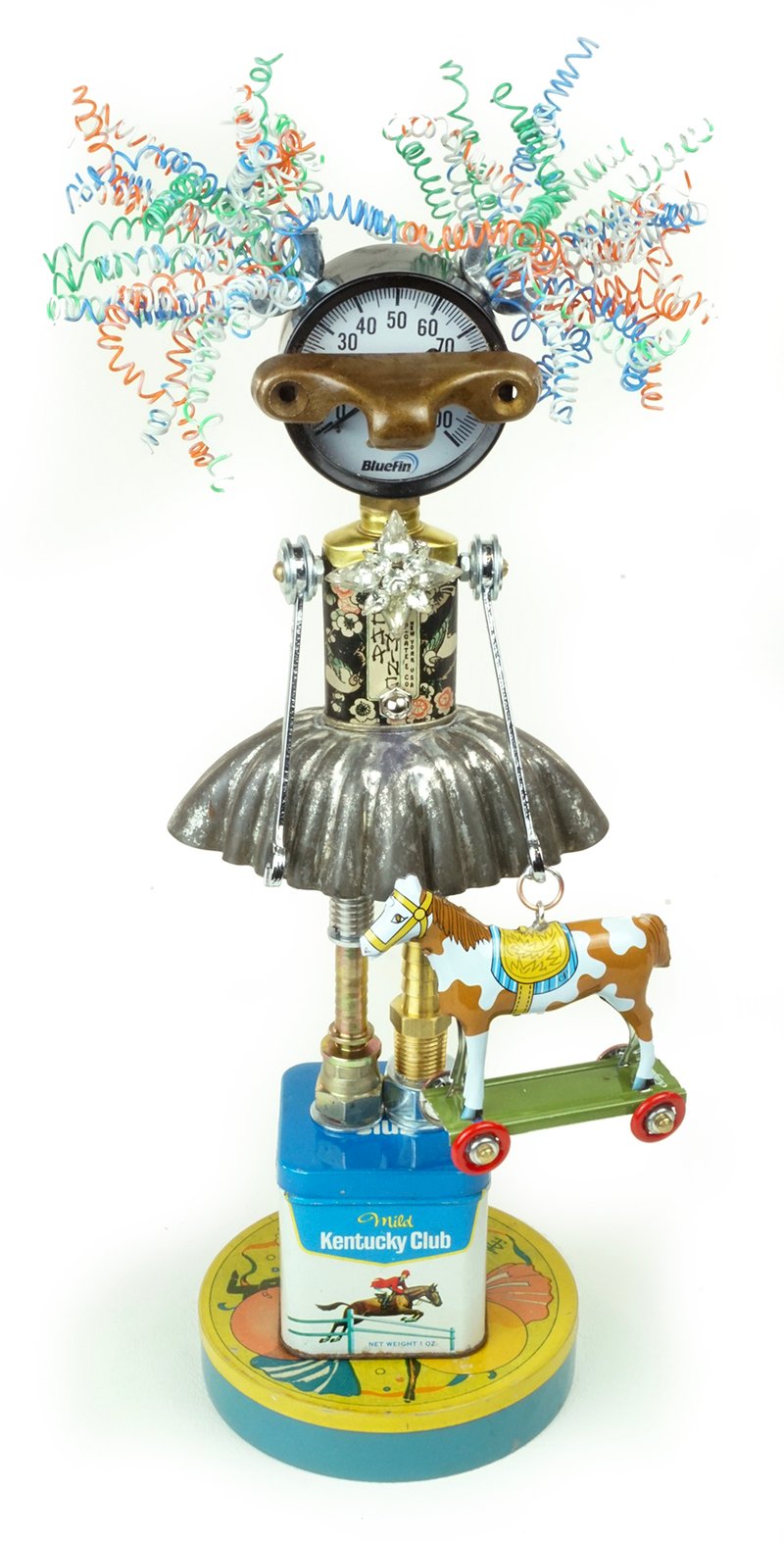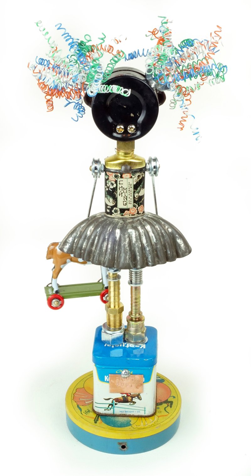 Principal Components: Talc sample tin, pressure gauge, sash lock, telephone wire, tartlet tin, wrenches, hose fittings, tobacco tin, party noisemaker, Christmas ornament