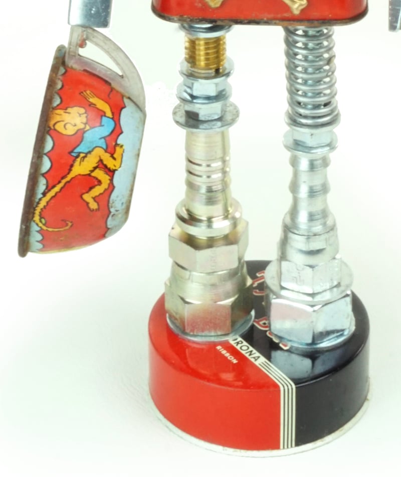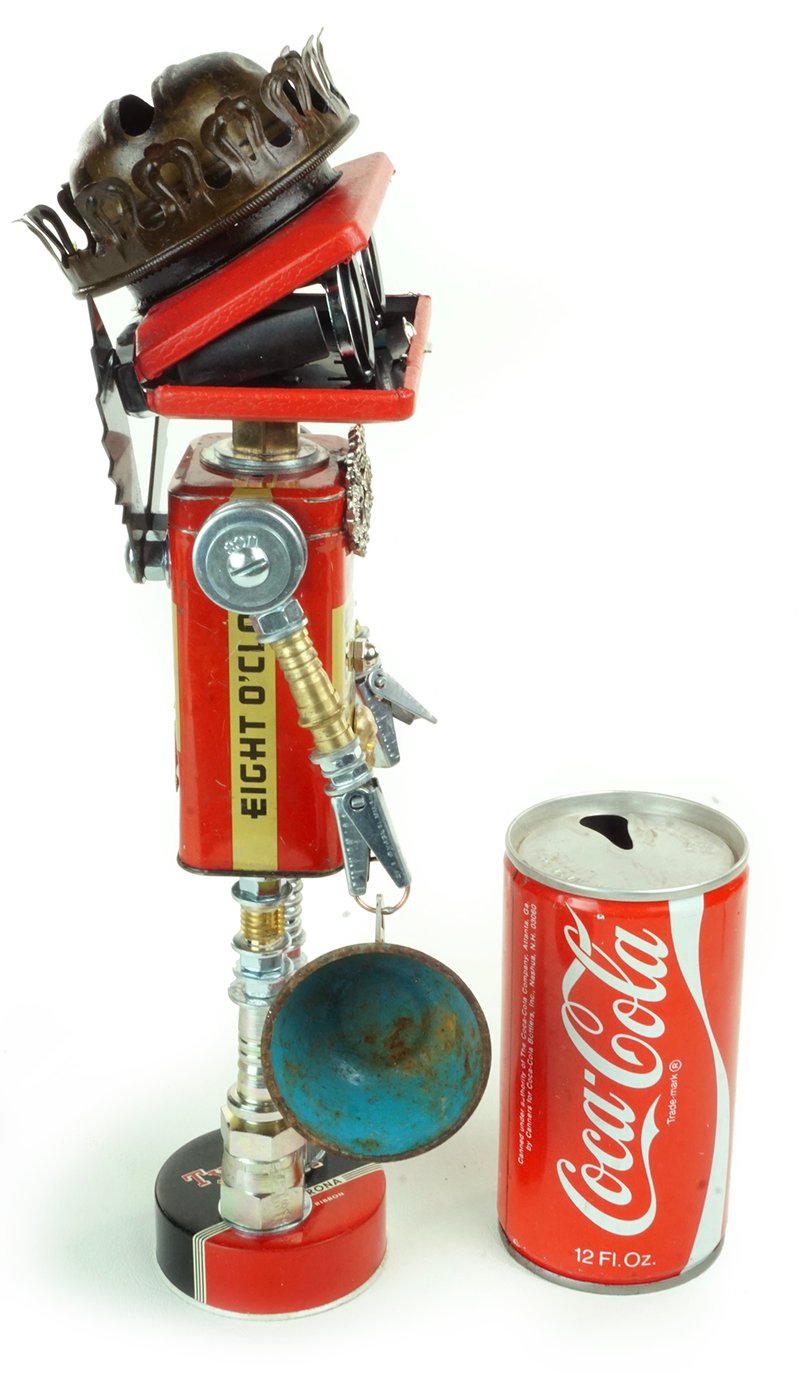 Principal Components: Coin bank, opera glasses, toy teacup, anti-kickback pawls, oil lamp burner, typewriter ribbon tin, toggle bolts, hose fittings