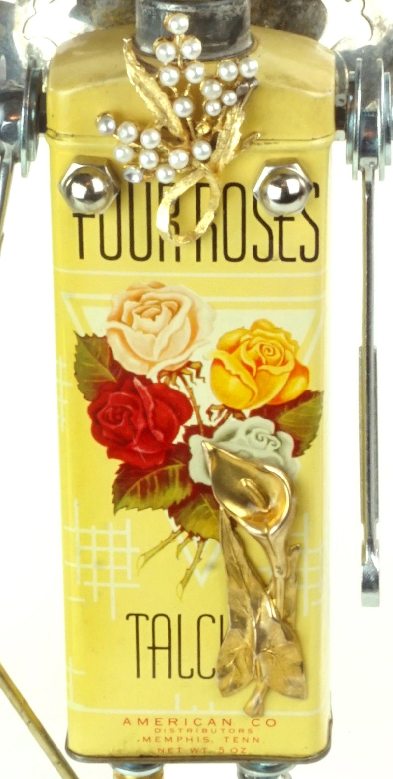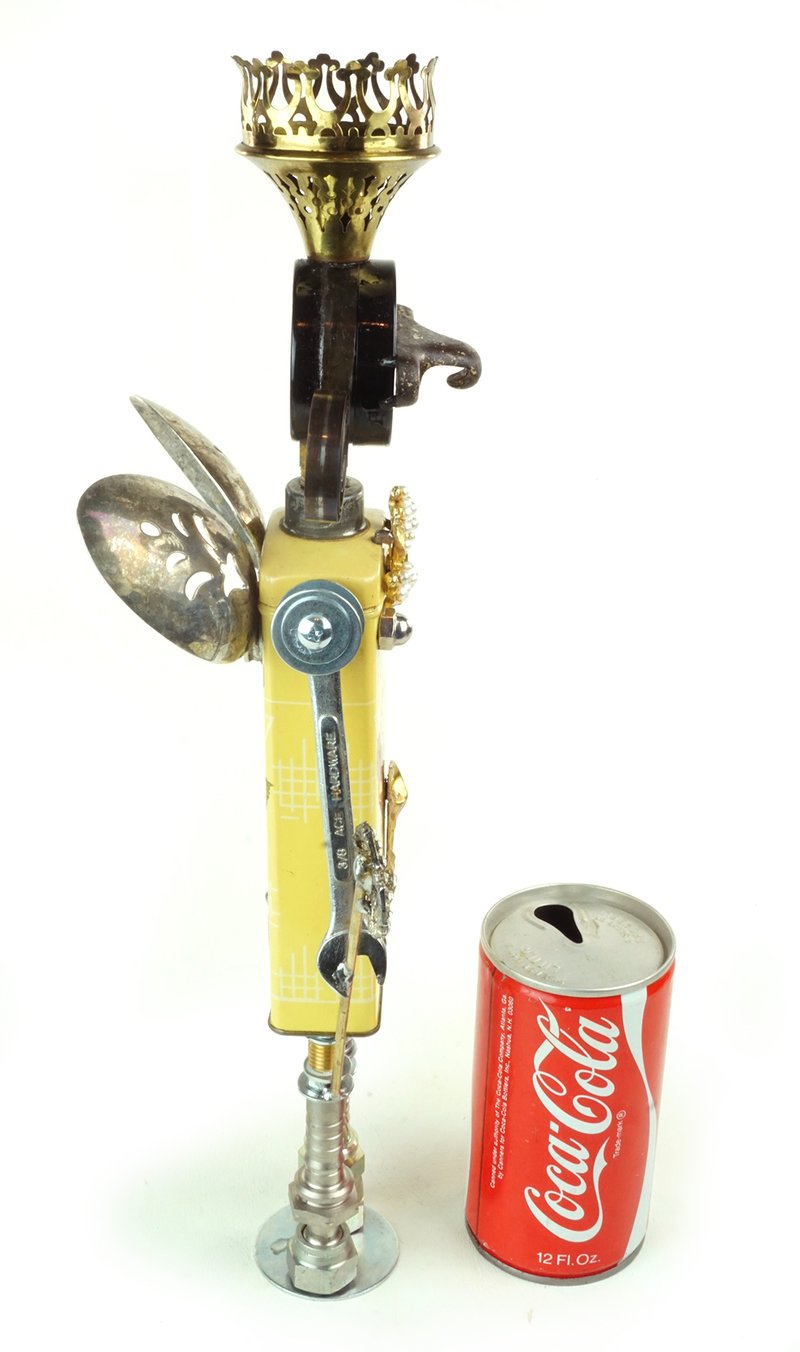 Principal Components: Talc tin, pressure gauge, sash lock, gas lamp burner, clock springs, slotted serving spoons, wrenches, hose fittings, jewelry