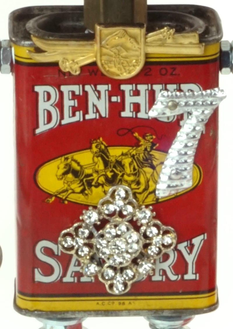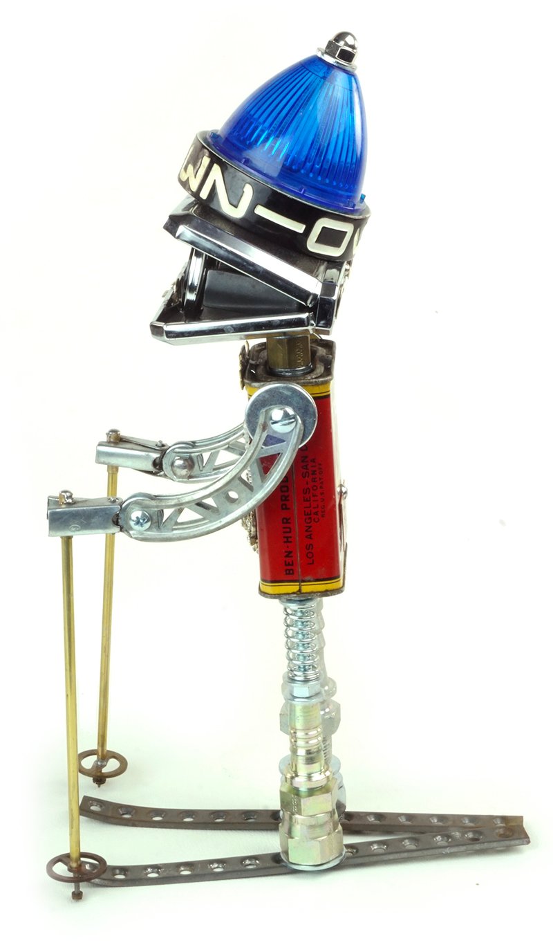 Principal Components: Spice tin, opera glasses, auto signal lens, gas pump dial, erector set girders, toggle bolts, hose fittings, clock gears