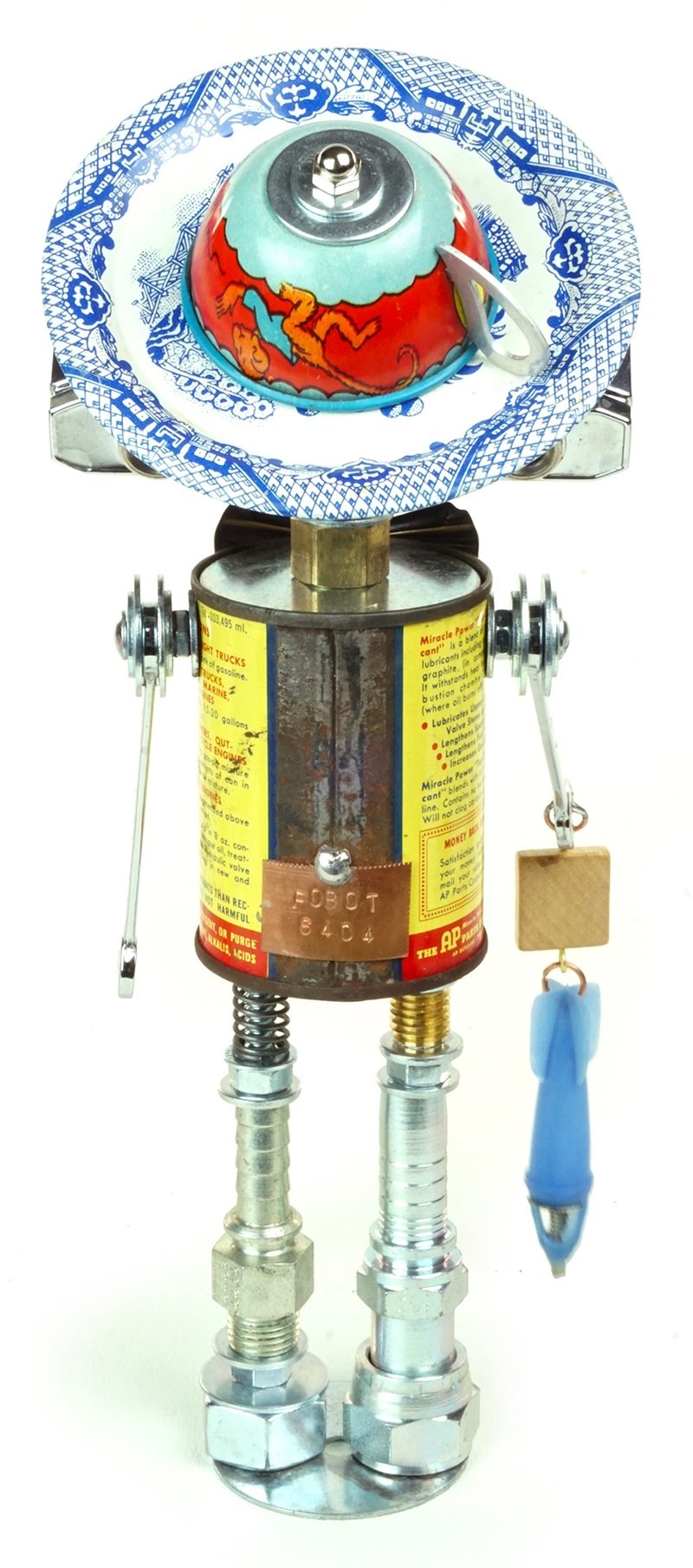 Principal Components: Engine additive can, opera glasses. toy teacup and saucer, wrenches, hose fittings, cap bomb, Scrabble tile