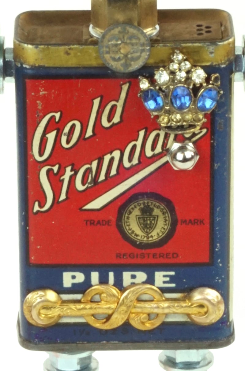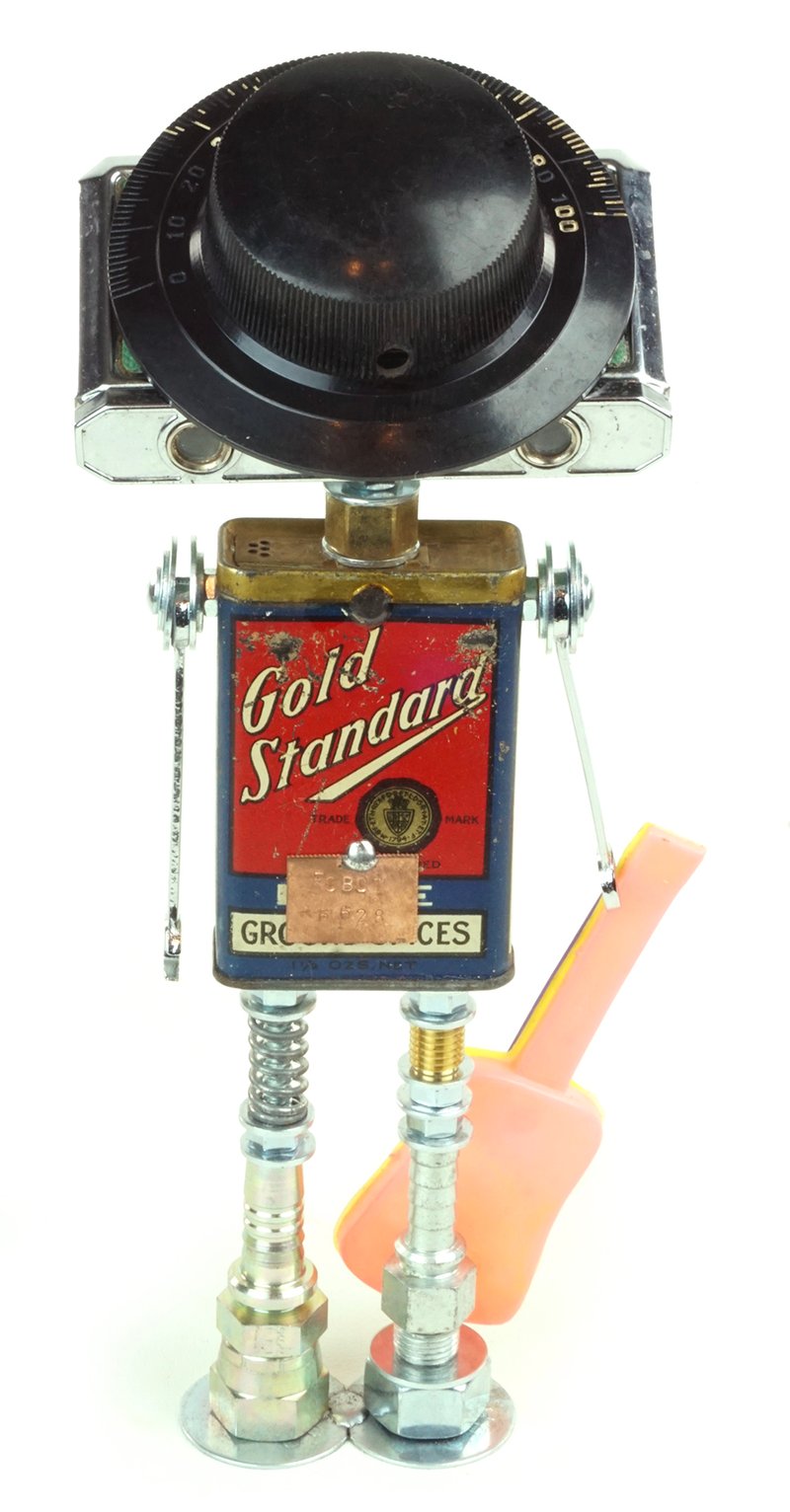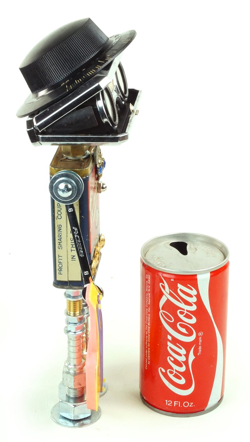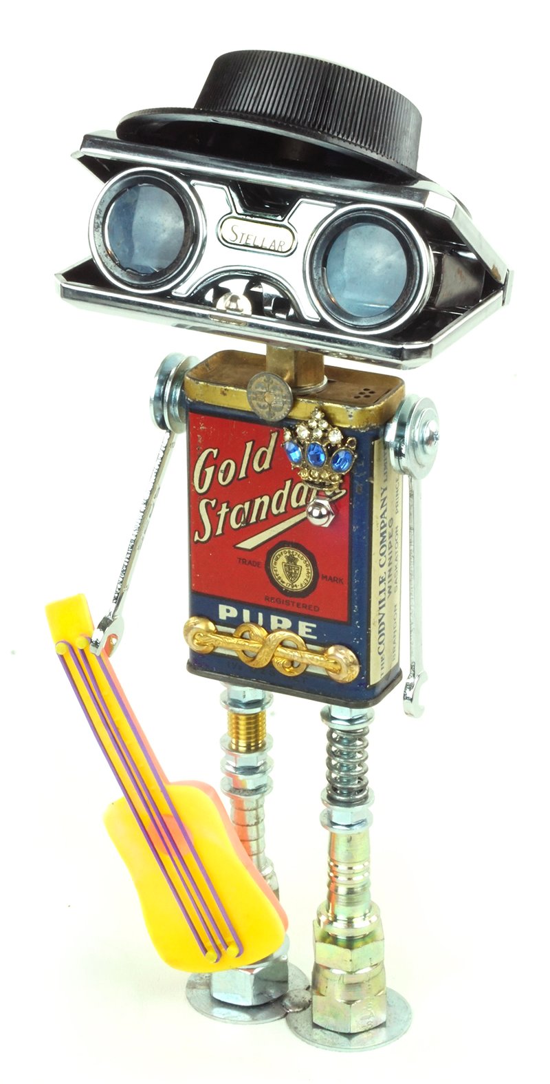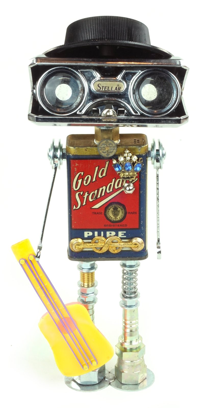 Principal Components: Spice tin, opera glasses, ham radio dial, guitar party favor, wrenches, hose fittings